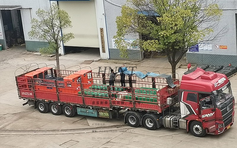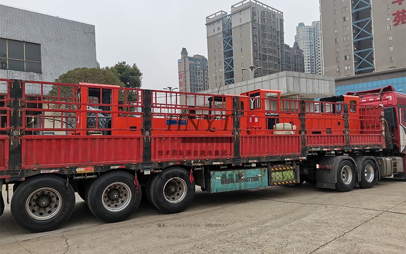客戶采購了4套雙駕駛室蓄電池湘潭電機(jī)車,裝滿了2輛大卡車。
