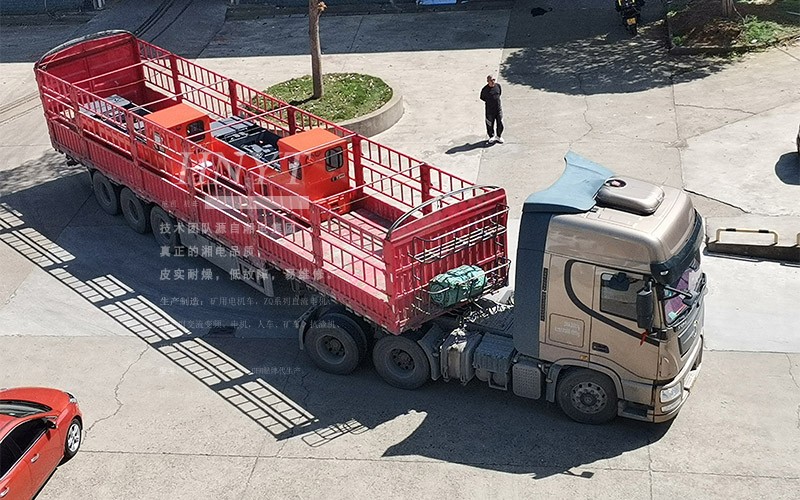 河南客戶采購的2臺礦用8噸蓄電池電機車都是變頻調(diào)速和氣制動,今天由專車發(fā)往客戶的礦山。